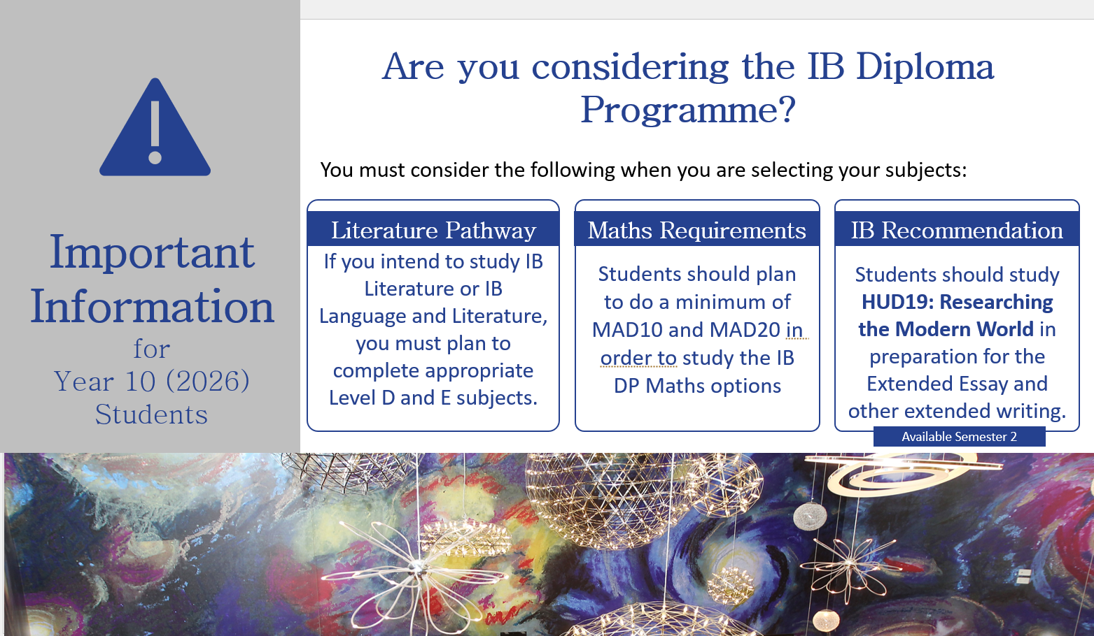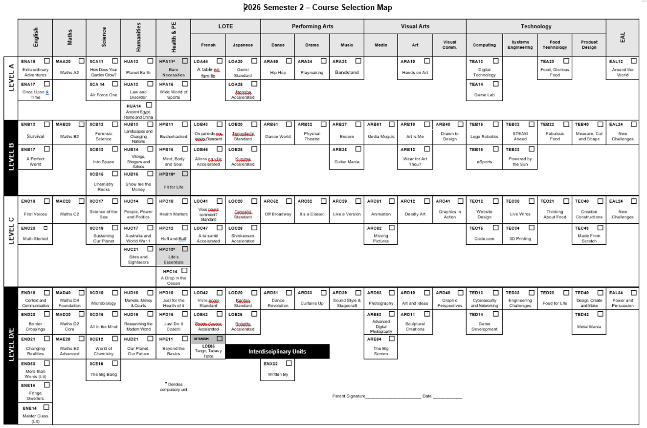 It is time to start thinking about your subjects for Semester 2, 2026. The upcoming Parent Teacher Interviews are an opportunity for you to start talking with your parents and teachers about subjects for next semester