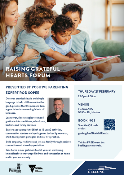 Book here: https://tickets.geelongaustralia.com.au/event/raising-grateful-hearts-family-forum-