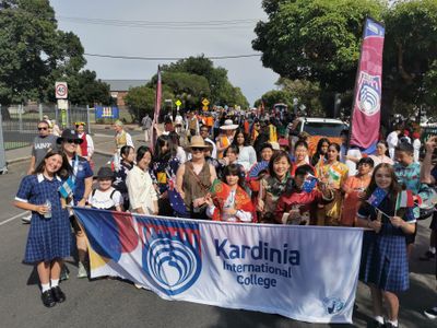 On Saturday 28 February, Kardinia took part in the Pako Festa parade, walking together down Pakington Street with staff and families. Many of us wore cultural clothing or carried flags and signs that showed the different backgrounds in our school community.