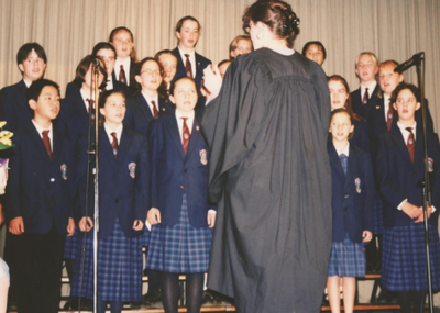 ‘The first anniversary celebration of the opening of the College, our first Founders’ Day, saw the first public performance of the College Song ‘Bridges to the Future’…The Kardinia International College song was composed by inaugural staff member Mrs Debbie Howard.’