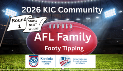 The 2026 AFL Community Footy Tipping competition is hosted by the CCC. It is open to all K-12 Kardinia families. Entry is $10 per family and the prize money will be a percentage of all entries. The more involved, the bigger the prizes! Click on the link below to be part of the competition!