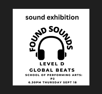 The Level D Music class, Global Beats has been working on creating sound installations as part of their composition folio. The student work will be exhibited Wednesday September 18 at 6.30pm in room P2 of the SPA. We invite you to come and hear their work.