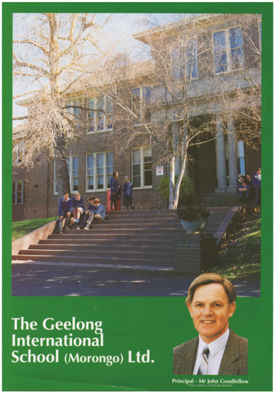 ‘Once John Goodfellow was appointed Principal, planning for the new school continued at a rapid pace. The school was to be called, ‘The Geelong International School’. This was soon changed to ‘Geelong International College’. A concern was then raised that this new name was too similar to an existing school in the Geelong region. The College Board investigated the alternatives and settled on a name full of meaning and local significance.