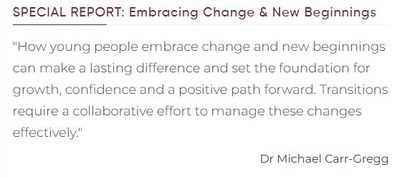 Periods of change are an inevitable part of growing up. Whether it's the start of a new school year, moving between year levels, or stepping beyond the school gates for the final time, each transition presents both opportunities and challenges. These moments often require young people to use and strengthen the skills needed to manage uncertainty, adjust to new environments and build resilience. While some may embrace change with enthusiasm, others can find it unsettling and disruptive to their sense of routine and security.