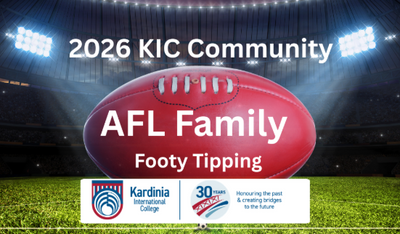 The 2026 AFL Community Footy Tipping competition is hosted by the CCC. It is open to all K-12 Kardinia families. Entry is $10 per family, and the prize money will be a percentage of all entries. The more involved, the bigger the prizes! Click on the link below.