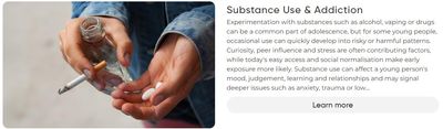 Experimentation with substances such as alcohol, vaping or drugs can be a common part of adolescence, but for some young people, occasional use can quickly develop into risky or harmful patterns. Curiosity, peer influence and stress are often contributing factors, while today's easy access and social normalisation make early exposure more likely. Substance use can affect a young person's mood, judgement, learning and relationships and may signal deeper issues such as anxiety, trauma or low self-esteem. Adult carers play a vital role in prevention by staying connected, recognising early warning signs and keeping conversations calm, honest and supportive. With awareness, guidance and care, families can help young people make safer choices and develop healthy coping skills that protect their wellbeing into adulthood.